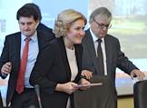 Общее собрание ректоров 21-ого ведущего университета России – членов ассоциации "Глобальные университеты" в НИУ ВШЭ. Слева направо: ректор Университета ИТМО Владимир Васильев, заместитель председателя правительства России Ольга Голодец и ректор НИУ ВШЭ Ярослав Кузьминов во время собрания.