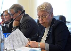 Общее собрание ректоров 21-ого ведущего университета России – членов ассоциации "Глобальные университеты" в НИУ ВШЭ. Министр образования и науки России Ольга Васильева во время собрания.