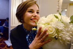 Реклама компании "Аэрофлот". Презентация брэнда "Амбассадор-Победа" в отеле "St. Regis". Сотрудница брэнда "Амбассадор-Победа" Анастасия Зиновьева.