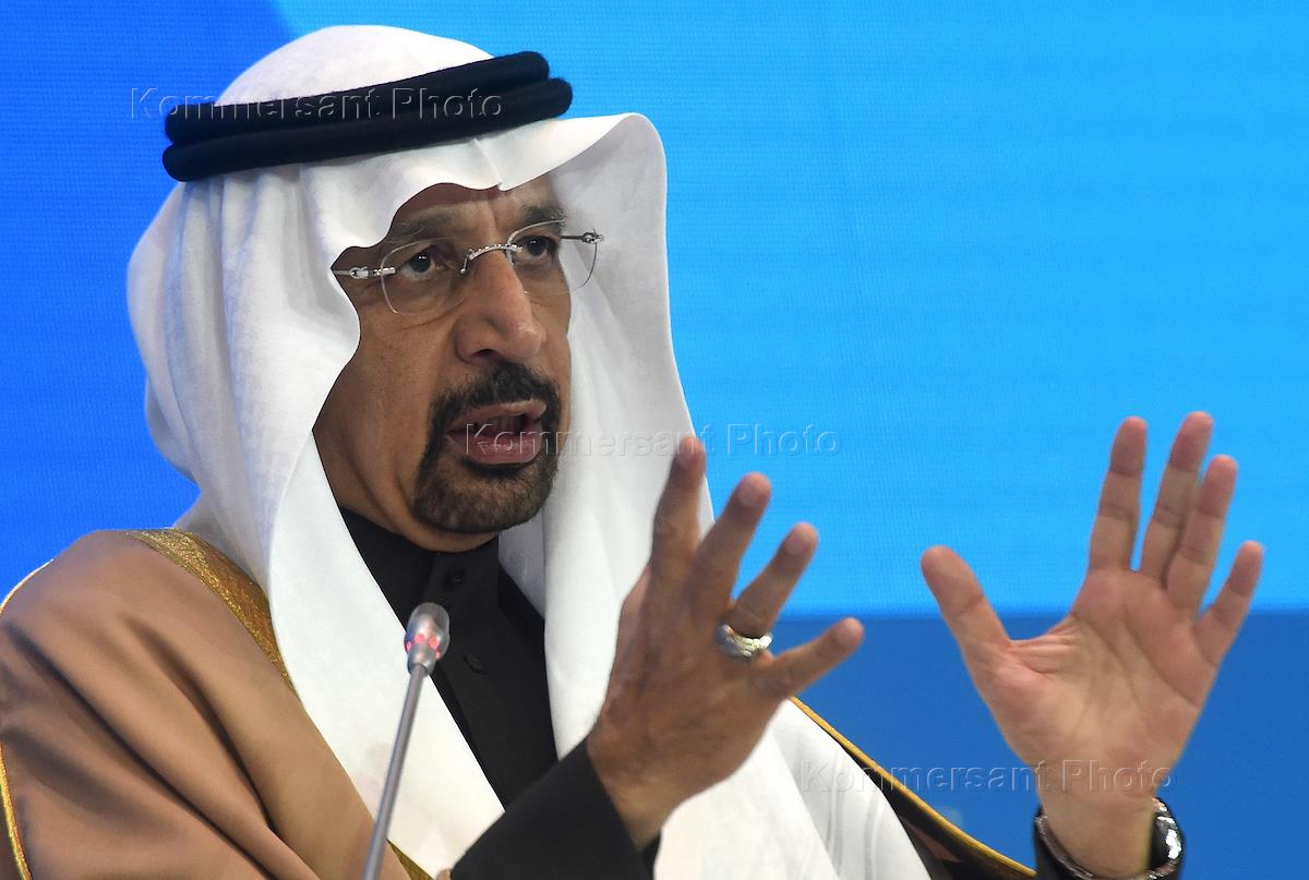 Пленарное заседание "ТЭК России: национальные интересы и глобальные тренды" прошло в ЦВЗ "Манеж" в рамках международного форума по энергоэффективности и развитию энергетики "Российская энергетическая неделя". Министр энергетики, промышленности и минеральных ресурсов Саудовской Аравии Халид аль-Фалих во время заседания.