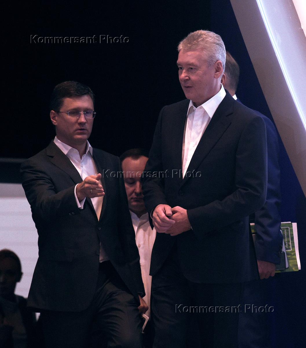 Международный форум по энергоэффективности и развитию энергетики "Российская энергетическая неделя" прошел в Центральном выставочном зале (ЦВЗ) "Манеж". Мэр Москвы Сергей Собянин (справа) и министр энергетики России Александр Новак (слева) во время пленарного заседания "Объединяя усилия инфраструктурных отраслей и регионов на благо развития экономики".