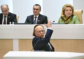 420-е пленарное заседание Совета Федерации (СФ) России. Писатель, драматург Эдвард Радзинский (в центре) во время заседания.