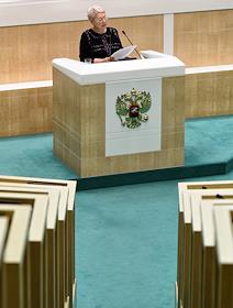 420-е пленарное заседание Совета Федерации (СФ) России. Председатель СФ России Валентина Матвиенко во время заседания.