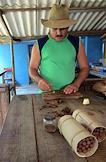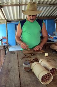 Виды Кубы. Кубинская женщина курит большую сигару на улице.