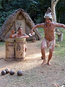 Виды Кубы. Развлекательная программа для туристов. Артисты показывают танцы индейцев.