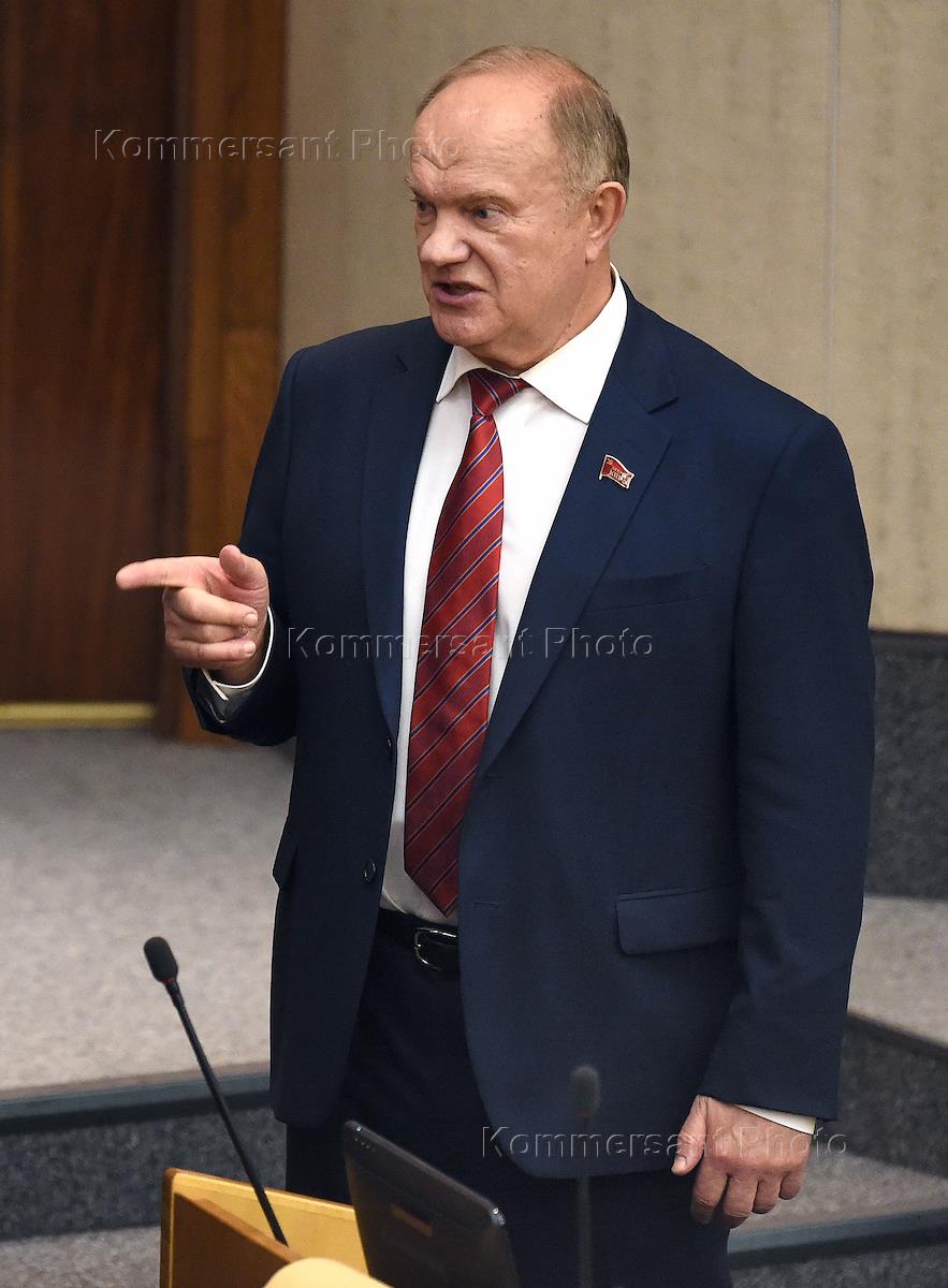 Пленарное заседание Государственной думы (ГД) России. Лидер Коммунистической партии России (КПРФ), член комитета ГД России по делам Содружества Независимых Государств, евразийской интеграции и связям с соотечественниками Геннадий Зюганов (в центре) во время заседания.