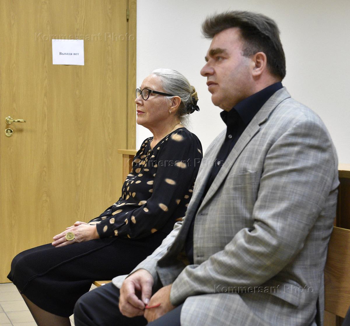 Фигуранты уголовного дела о хищении средств Государственного Русского музея (ГРМ) — глава службы безопасности ГРМ Ирина Кузнецова (слева) и бизнесмен Николай Дурасов (справа), обвиняемые в мошенничестве, во время заседания Смольнинского районного суда.