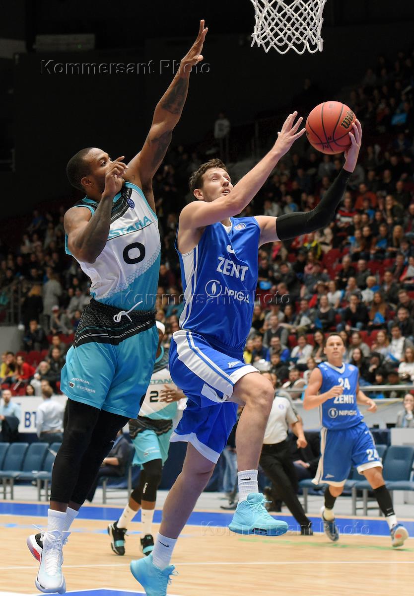 Единая лига ВТБ по баскетболу сезона 2017/18. Матч между командами "Зенит" (Санкт-Петербург) и "Астана" (Астана, Казахстан). Игрок команды "Зенит" Демонте Харпер (справа) во время матча.