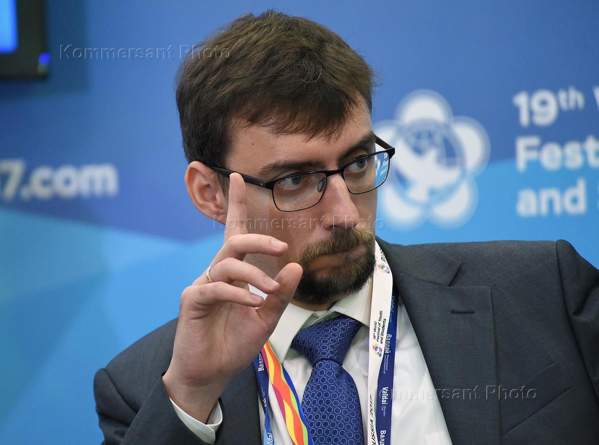 XIX Всемирный фестиваль молодежи и студентов в Сочи. День третий. Программный директор Российского совета по международным делам Иван Тимофеев во время панельной дискуссии "Университеты в эпоху глобальных вызовов".