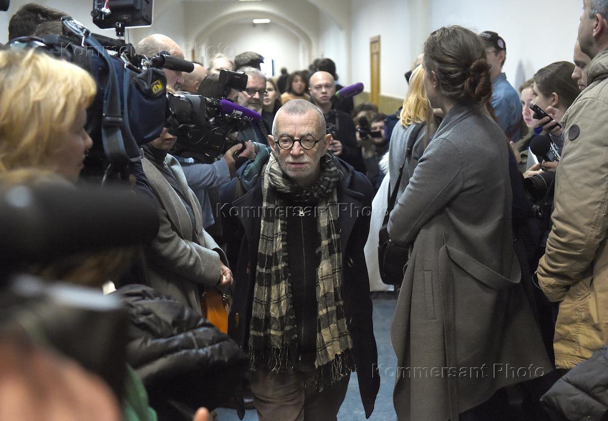 The consideration of the extension of the house arrest of Gogol Center director Kirill Serebrennikov, former general director of the nonprofit organization "Seventh Studio" Yuri Itin, former chief accountant of the nonprofit organization "Seventh Studio" Nina Maslyaeva was held in the Basmanny District Court. Journalists in front of the meeting hall. Poet Lev Rubinstein (center) after the court session.