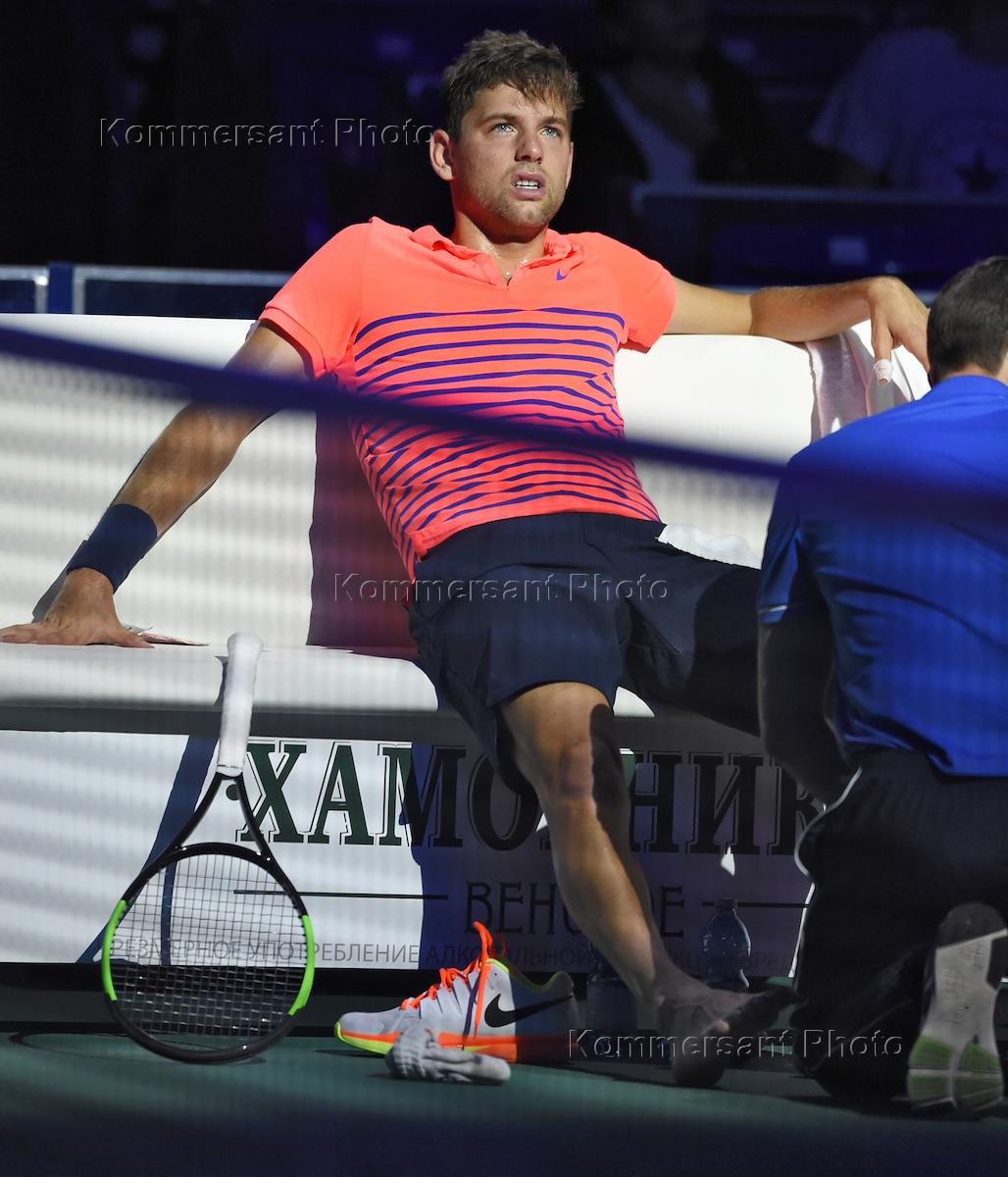 XXVIII international tennis tournament "VTB Kremlin Cup" in "Olimpiyskiy" sports complex. Slovakian tennis player Magdalena Rybarikova during a match with Russian tennis player Maria Sharapova.
