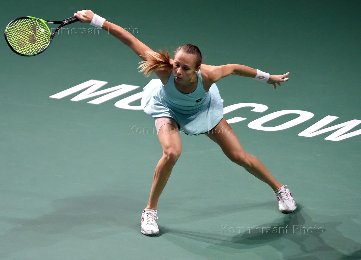 XXVIII international tennis tournament "VTB Kremlin Cup" in "Olimpiyskiy" sports complex. Slovakian tennis player Magdalena Rybarikova during a match with Russian tennis player Maria Sharapova.