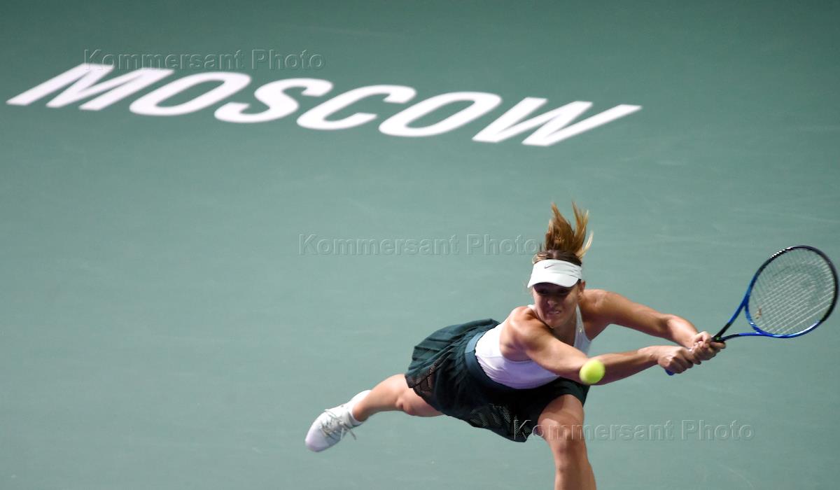 XXVIII international tennis tournament "VTB Kremlin Cup" in "Olimpiyskiy" sports complex. Russian tennis player Maria Sharapova during a match with Slovakian tennis player Magdalena Rybarikova.