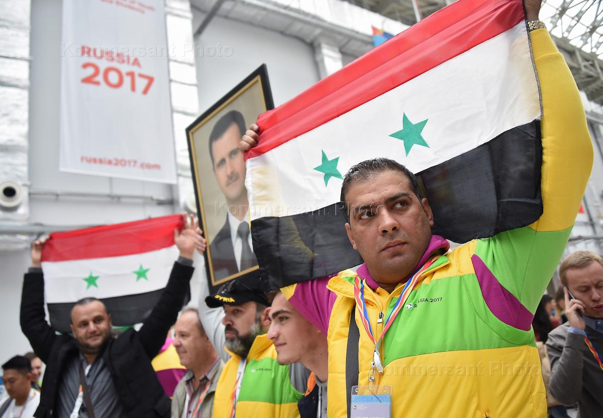 XIX Всемирный фестиваль молодежи и студентов в Сочи. День четвертый. Акция сирийской делегации в поддержку президента Сирии Башара Асада.