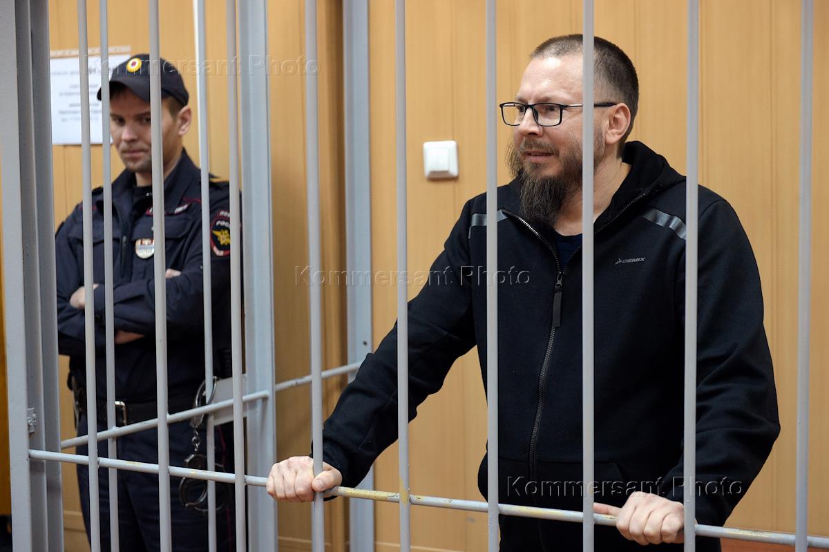 Активист движения "Артподготовка" Алексей Политиков, обвиняемый в нападении на полицейского на несанкционированном митинге 26 марта 2017 года в центре Москвы, на заседании Тверского районного суда.
