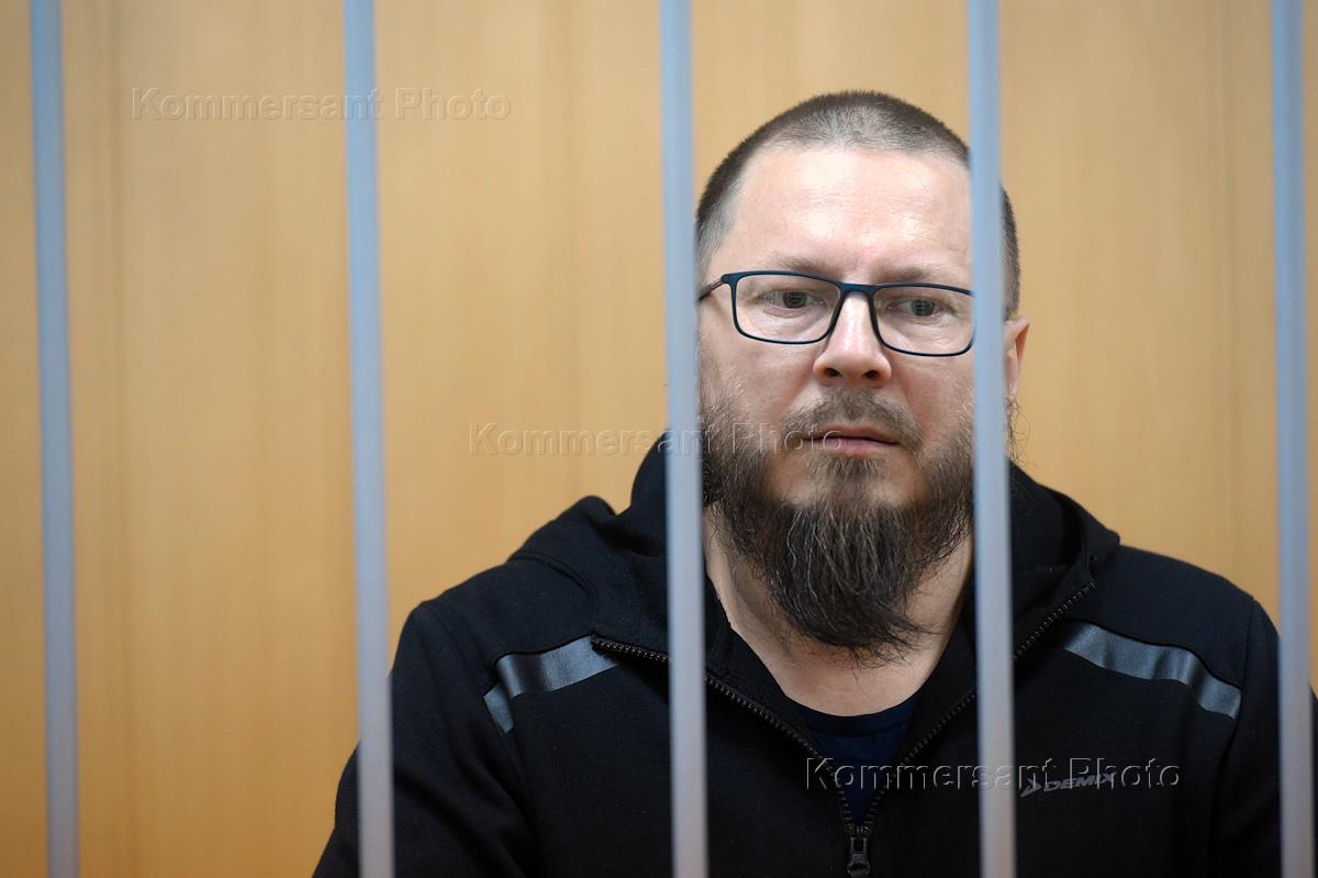 Активист движения "Артподготовка" Алексей Политиков, обвиняемый в нападении на полицейского на несанкционированном митинге 26 марта 2017 года в центре Москвы, на заседании Тверского районного суда.