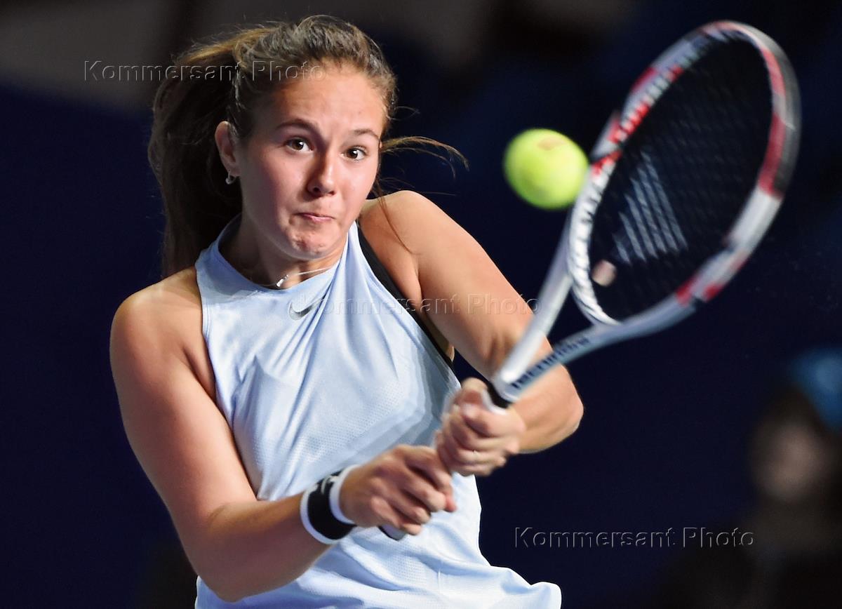XXVIII международный теннисный турнир "ВТБ Кубок Кремля" в спортивном комплексе "Олимпийский". Российская теннисистка Дарья Касаткина во время матча с белорусской теннисткой Александрой Саснович.