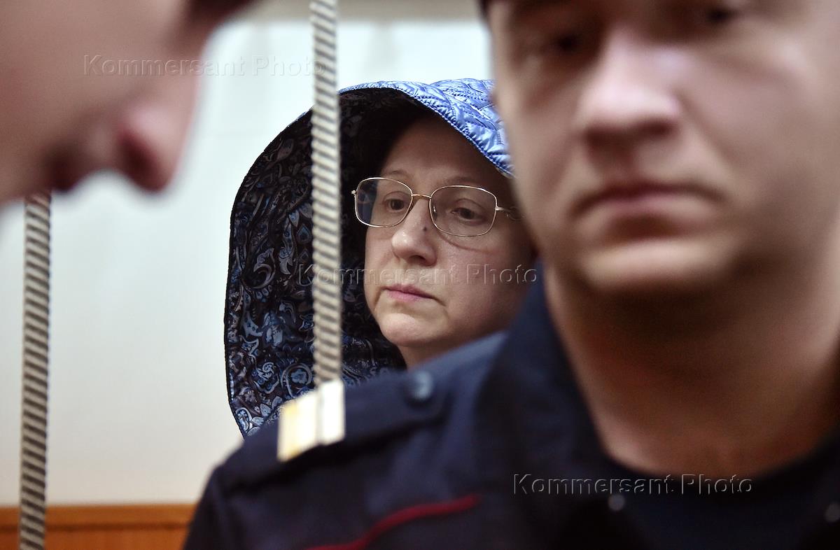 Бывший заместитель начальника финансово-экономического управления ФСИН России Светлана Алексеева (в центре), обвиняемая в растрате свыше 160 миллионов рублей, во время заседания Басманного районного суда.