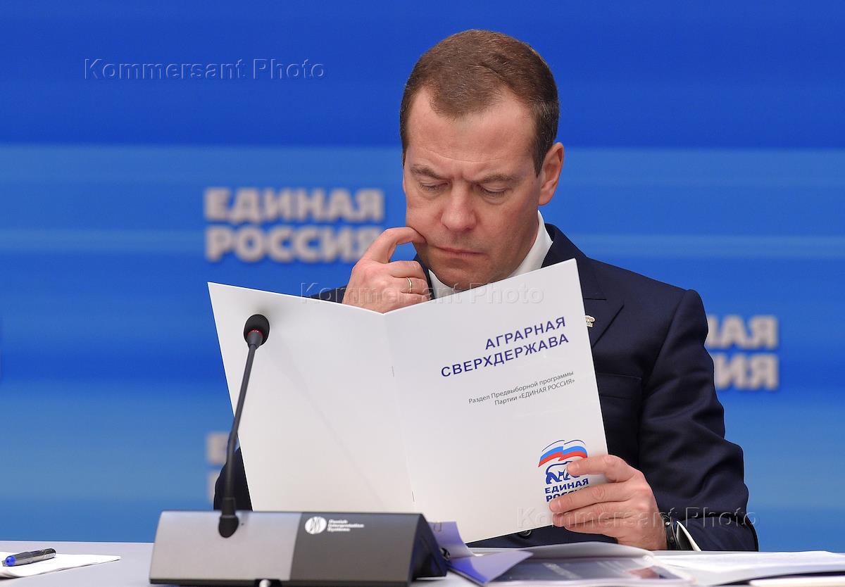 Заседание программной комиссии партии "Единая Россия". Председатель правительства России, председатель партии "Единая России" Дмитрий Медведев во время заседания в главном офисе партии.