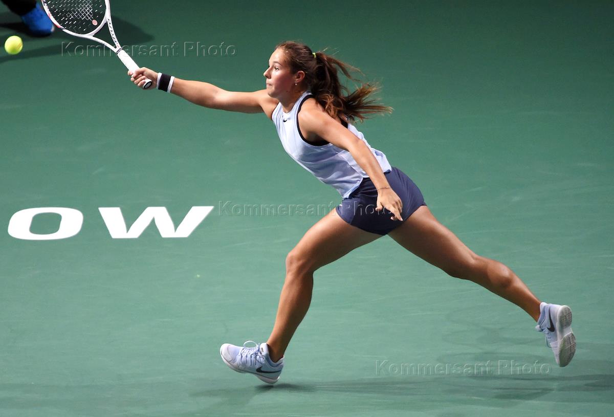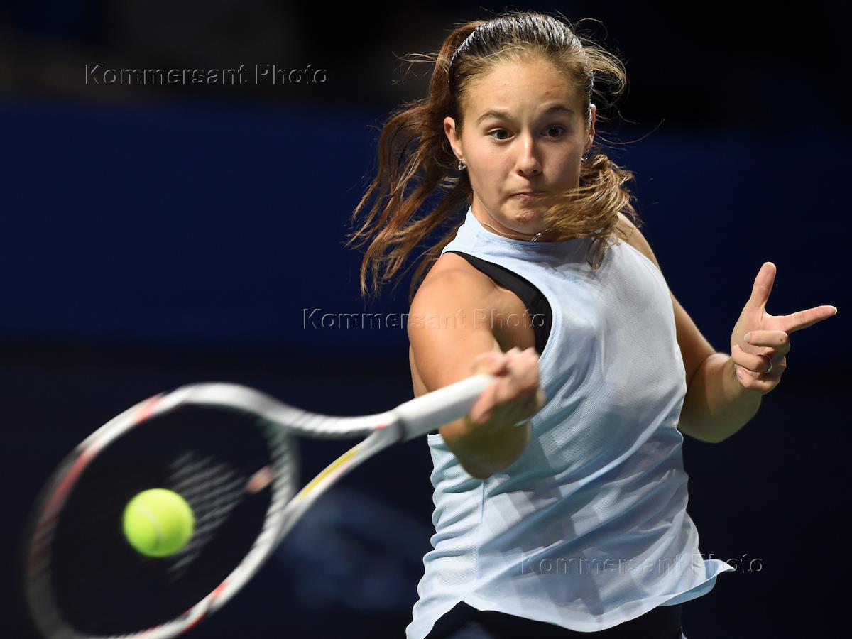 XXVIII международный теннисный турнир "ВТБ Кубок Кремля" в спортивном комплексе "Олимпийский". Российская теннисистка Дарья Касаткина во время матча с румынской теннисисткой Ириной-Камелией Бегу.