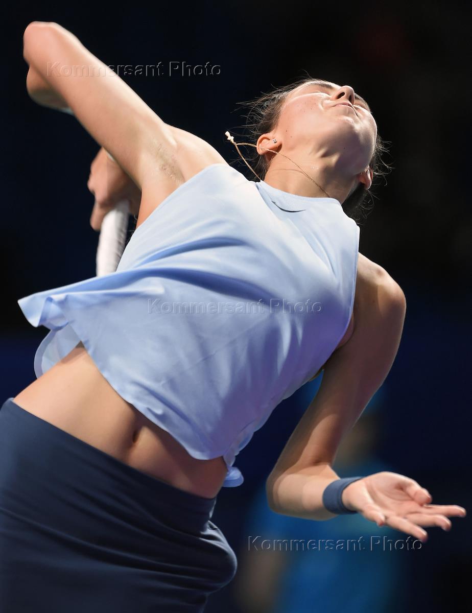 XXVIII международный теннисный турнир "ВТБ Кубок Кремля" в спортивном комплексе "Олимпийский". Российская теннисистка Дарья Касаткина во время матча с румынской теннисисткой Ириной-Камелией Бегу.