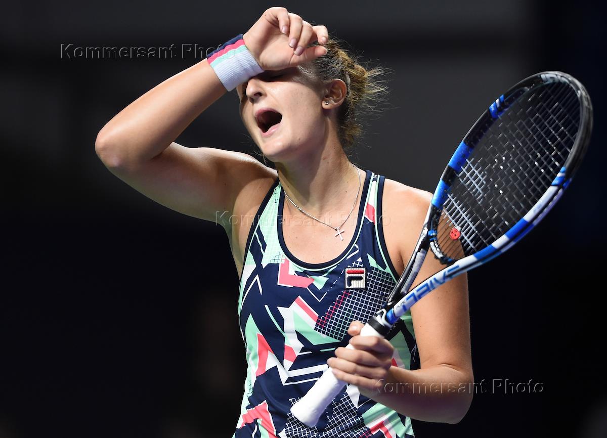 XXVIII международный теннисный турнир "ВТБ Кубок Кремля" в спортивном комплексе "Олимпийский". Российская теннисистка Дарья Касаткина во время матча с румынской теннисисткой Ириной-Камелией Бегу.
