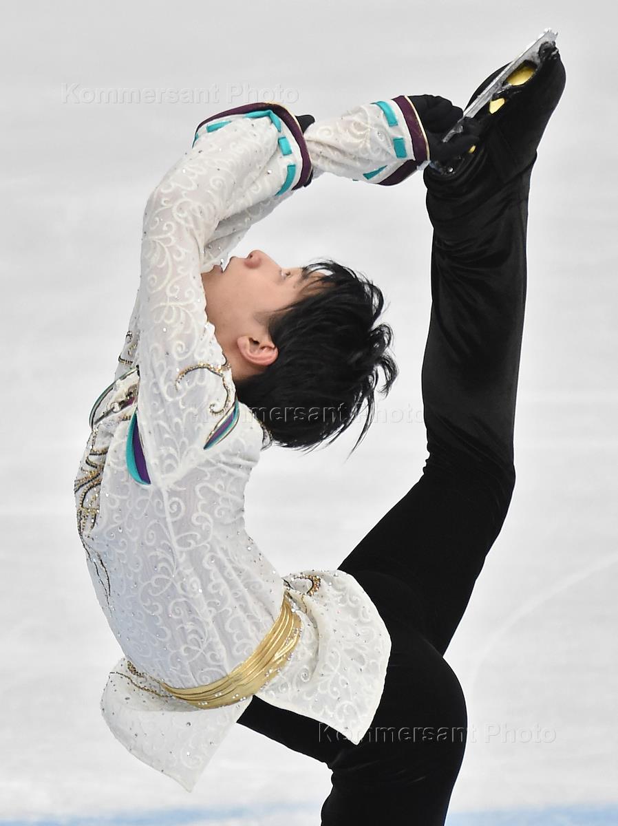 ISU Гран-при "Кубок Ростелеком" - 2017 по фигурному катанию во Дворце спорта "Мегаспорт". День второй. Фигурист Юдзуру Ханю (Япония) во время исполнения произвольной программы на I этапе мужского одиночного катания.