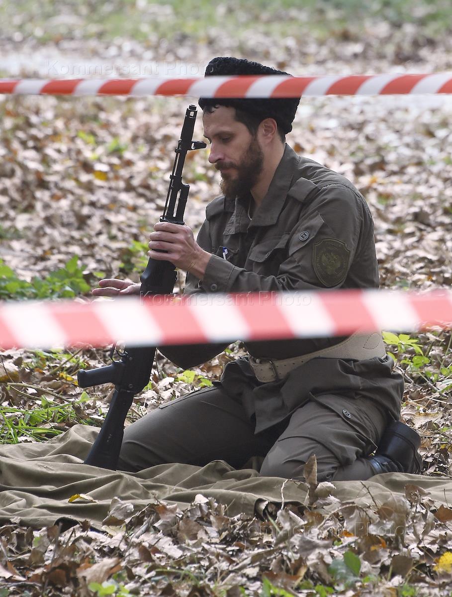 Турнир по казачьему многоборью на Кубок Атамана "Покровский этап" прошел в сквере Дворца культуры профсоюзов. Участники турнира во время соревнований по стрельбе.