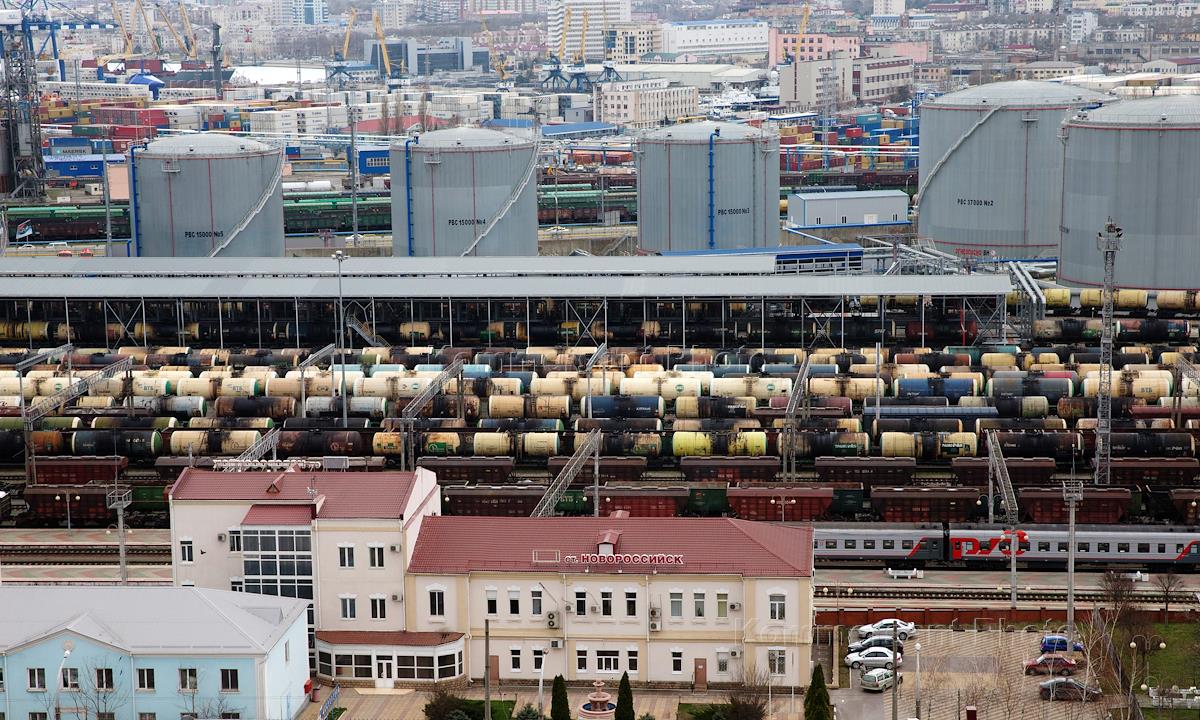 Genre photography. Railway transport. Freight trains at the Novorossiysk railway station.