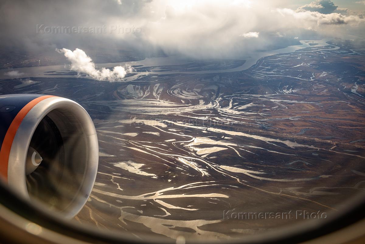 Жанровая фотография. Река Амур. Вид из иллюминатора самолета.