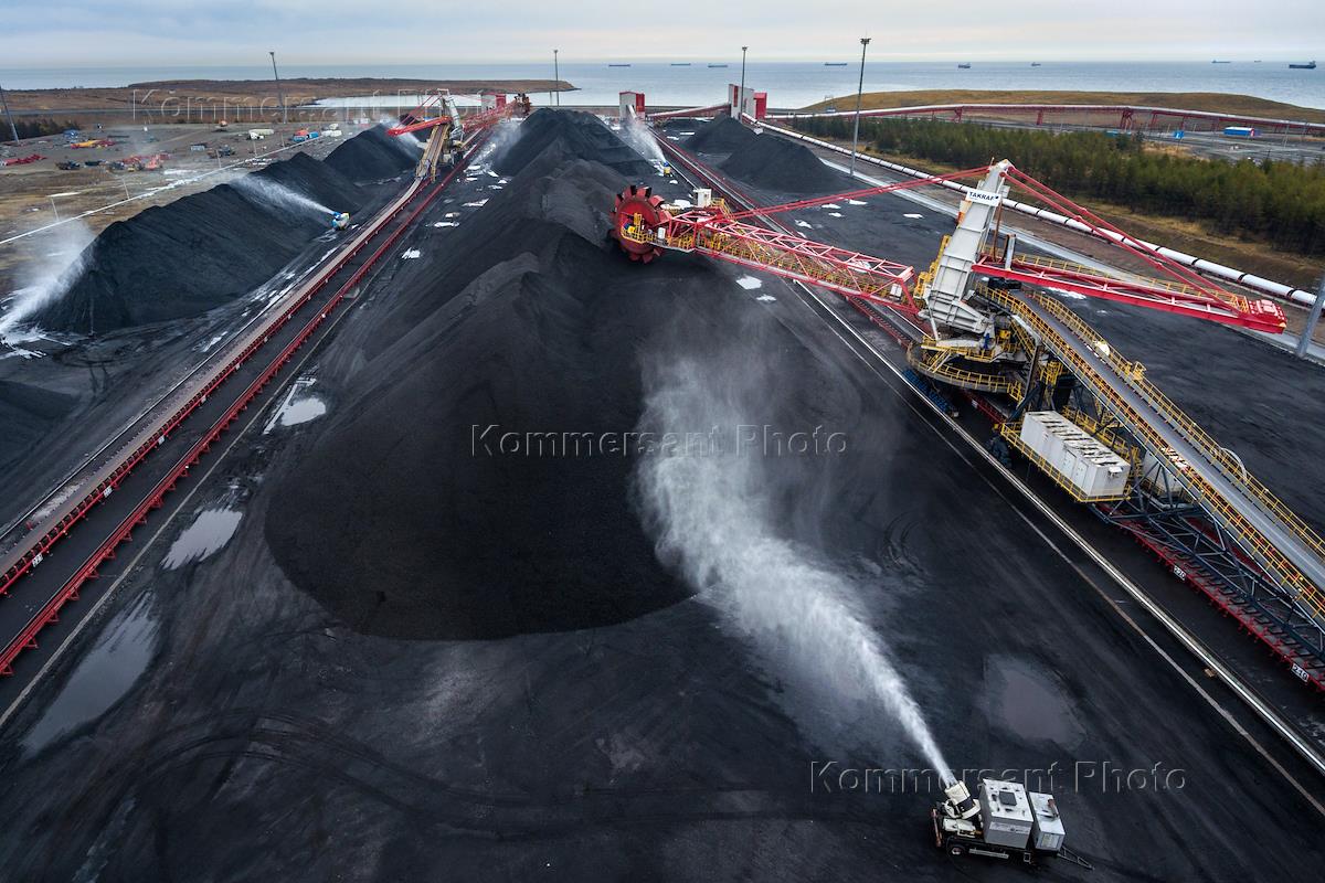 Терминально-логистический центр "Калининград". Погрузка угля в угольном терминале.