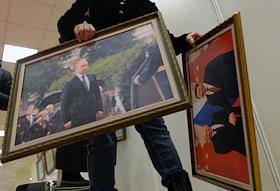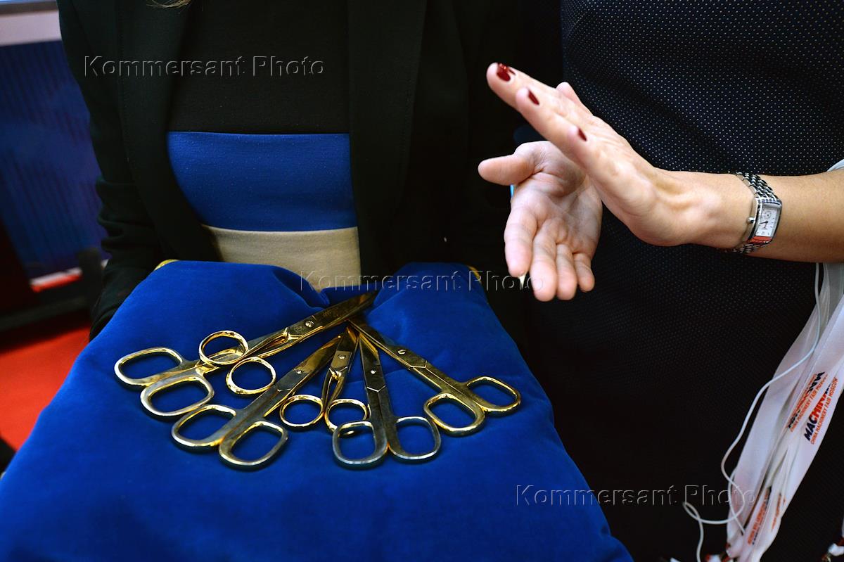 1-я Национальная выставка машиностроения и инноваций из Китая "China Machinery Fair 2017" прошла в Центральном выставочном комплеке (ЦВК) "Экспоцентр". Ножницы на бархатной подушечке во время церемонии открытия.