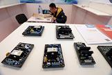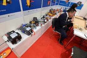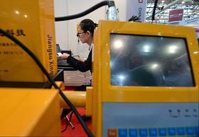 1-я Национальная выставка машиностроения и инноваций из Китая "China Machinery Fair 2017" прошла в Центральном выставочном комплеке (ЦВК) "Экспоцентр". Посетитель у стенда китайской компании China brand.