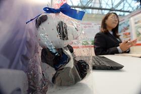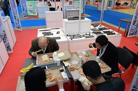 1-я Национальная выставка машиностроения и инноваций из Китая "China Machinery Fair 2017" прошла в Центральном выставочном комплеке (ЦВК) "Экспоцентр". Участники и гости во время дегустации конфет.
