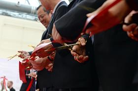 1-я Национальная выставка машиностроения и инноваций из Китая "China Machinery Fair 2017" прошла в Центральном выставочном комплеке (ЦВК) "Экспоцентр". Организаторы с ножницами и перерезаной красной ленточкой во время церемонии открытия выставки.