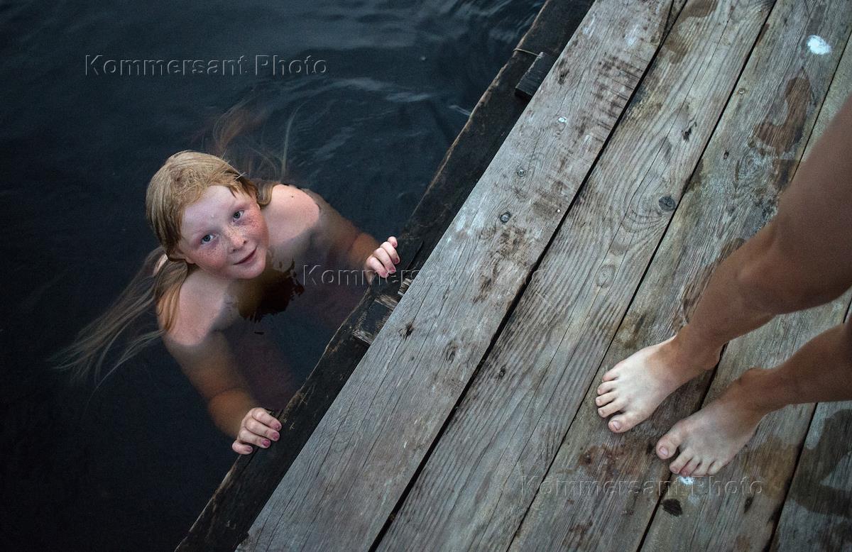 Кенозерский национальный парк. Местная девочка купается в озере.