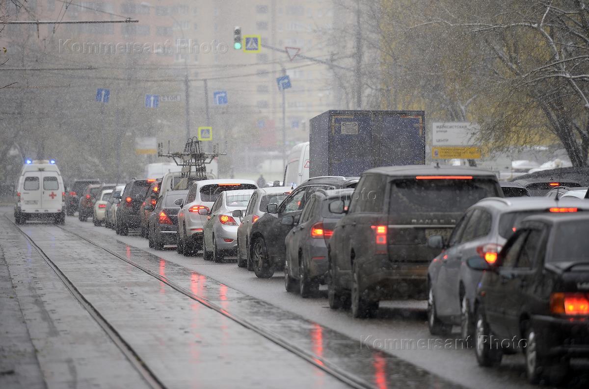 Виды Москвы после снегопада. Таганский район. Мужчина очищает автомобиль от снега.