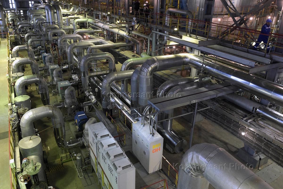 Мэр Москвы Сергей Собянин (справа) во время посещения теплостанции в районе Жулебино.