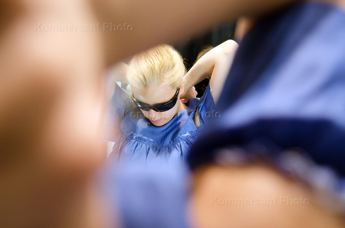 Фотопроект "Команда B1". Социально активные, незрячие молодые люди. Евгения Лагунина на концерте для слепоглухих людей, проходящем в школе около "Дома слепоглухих" в Пучково.