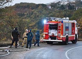 Взрыв газопровода на Южном берегу Крыма. Автомобиль пожарной охраны в районе взрыва.