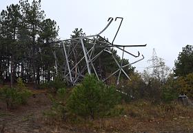 Взрыв газопровода на Южном берегу Крыма. Опоры ЛЭП в районе взрыва газопровода.
