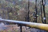 Взрыв газопровода на Южном берегу Крыма. Опоры ЛЭП в районе взрыва газопровода. Труба газопровода в районе взрыва.