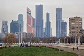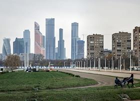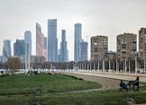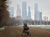 Виды Москвы. Центральный Московский ипподром на фоне Московского международного делового центра "Москва-Сити".