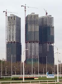 Центральный Московский ипподром. Строящиеся дома за полем ипподрома.