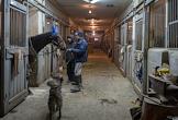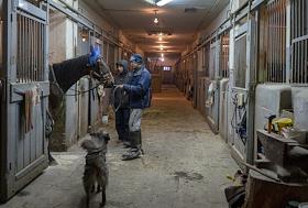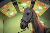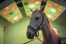 Центральный Московский ипподром. Лошадь под лампами для дезинфекции.