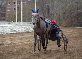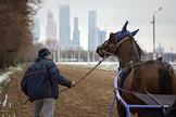 Центральный Московский ипподром. Лошадь во время тренировки.
