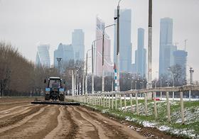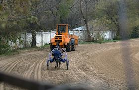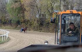 Центральный Московский ипподром. Выравнивание дорожек перед забегом.