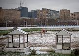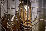 Центральный Московский ипподром. Лошадь за железной оградой.