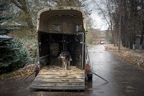 Центральный Московский ипподром. Собака в грузовике для перевозки лошадей.