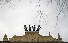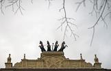 Центральный Московский ипподром. Квадрига с конями на крыше здания ипподрома.